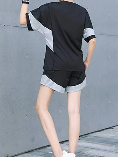 Yoga Basic 2pcs Yoga Set Athletic Suit Raglan Sleeve Crop Tee & Hip-hugging Leggings