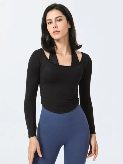 Be the first to review “Fake Two Piece Hanging Neck Running Yoga Workout Long Sleeve T-shirt” Cancel reply