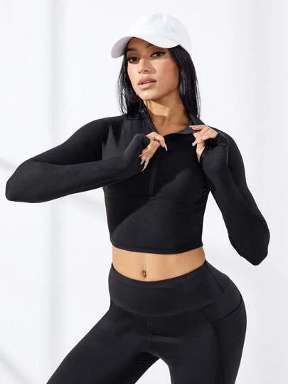 Be the first to review “Half Zip Thumb Holes Crop Sports Sweatshirt” Cancel reply