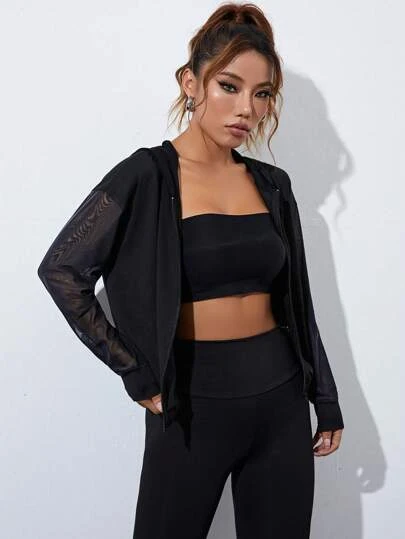 Be the first to review “Letter Graphic Contrast Fishnet Hooded Sports Jacket” Cancel reply