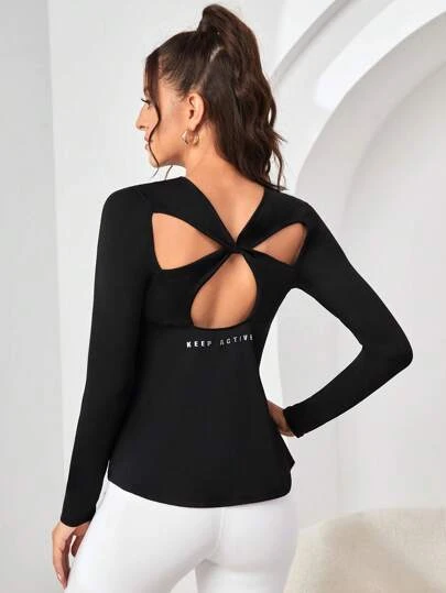 Be the first to review “Letter Graphic Cut Out Back Twist Back Sports Tee” Cancel reply
