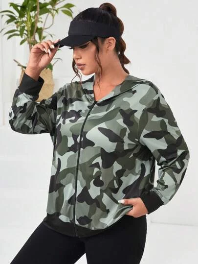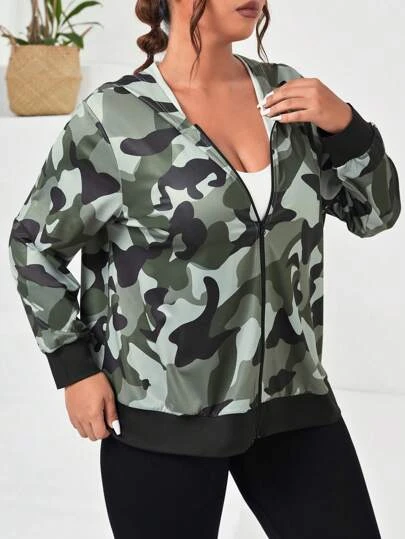Be the first to review “Plus Camo Print Zip Up Hooded Sports Jacket” Cancel reply