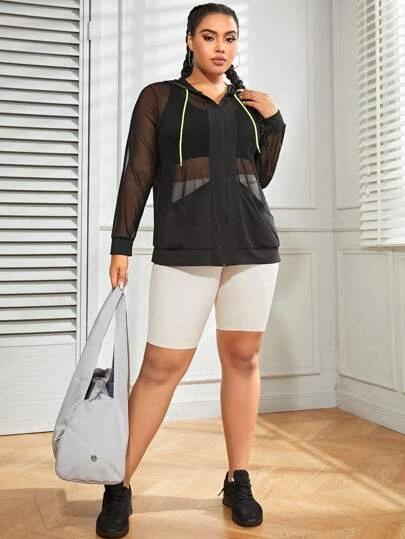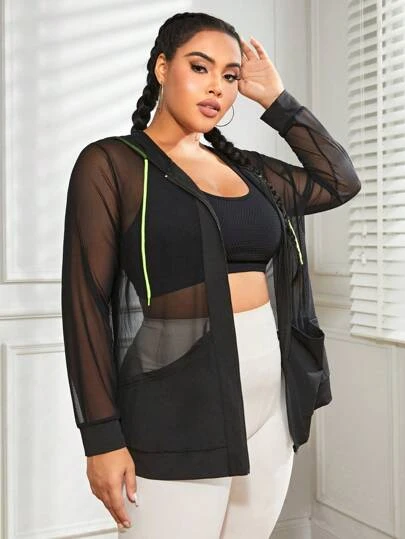 Be the first to review “Plus Drawstring Hooded Sheer Mesh Sports Jacket” Cancel reply