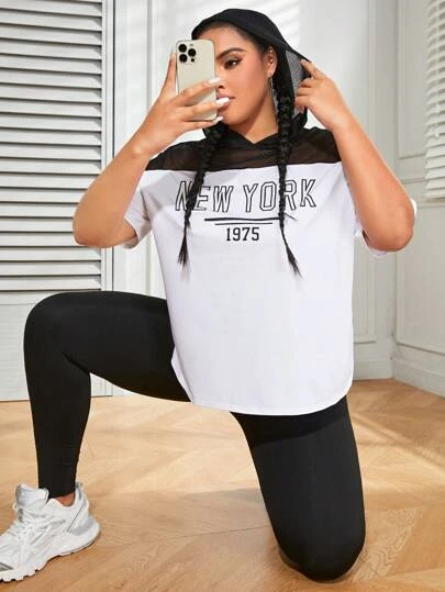 Be the first to review “Plus Letter Graphic Contrast Mesh Hooded Sports Tee” Cancel reply