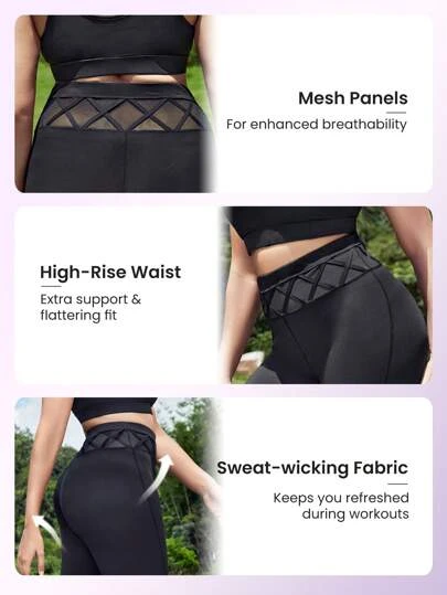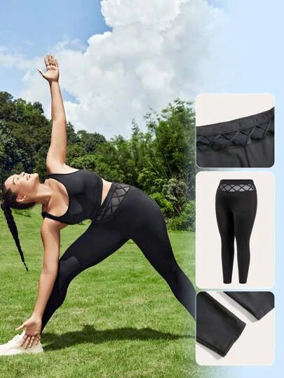 SHEIN Leisure Plus Hollow Out Wideband Waist Sports Leggings