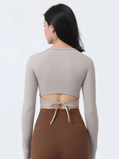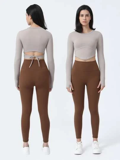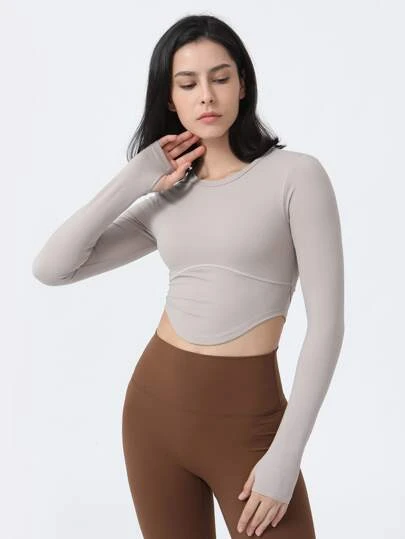 Be the first to review “Thumb Holes Waist Tie Slim Fit Crop Top Workout Yoga Long Sleeve T-shirt” Cancel reply