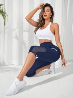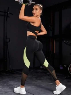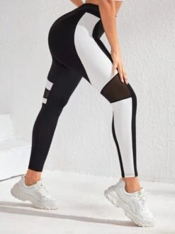 Colorblock Contrast Mesh Insert Tummy Control Sports Leggings