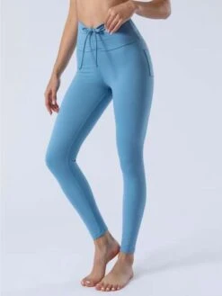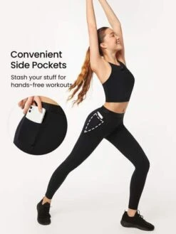 GLOWMODE 24″ FeatherFit™ Logo Tape Waist Yoga Leggings Ultra-Stretchy Gym Tights With Side Pocket