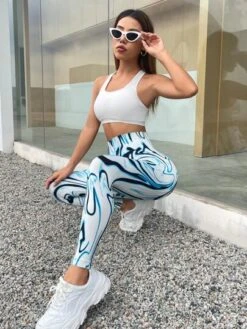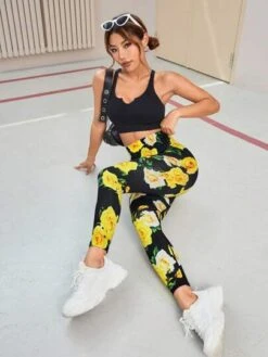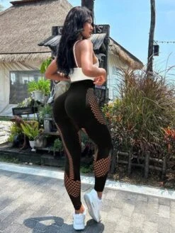 Contrast Mesh Phone Pocket Side Tummy Control Sports Leggings