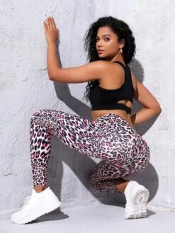 Leopard Print Wide Waistband Phone Pocket Side Sports Leggings