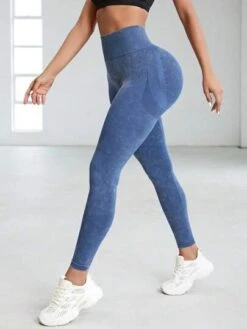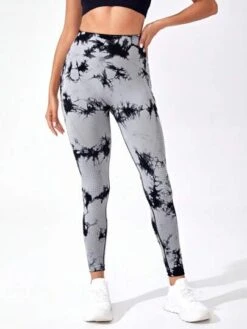 Striped Print Wide Waistband Sports Leggings With Phone Pocket