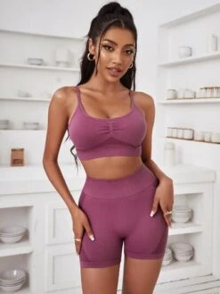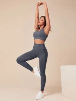 Yoga Basic Seamless Sports Bra & Wide Band Waist Fishnet Panel Leggings