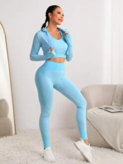 Yoga Basic 2pcs Yoga Set Athletic Suit Raglan Sleeve Crop Tee & Hip-hugging Leggings