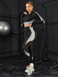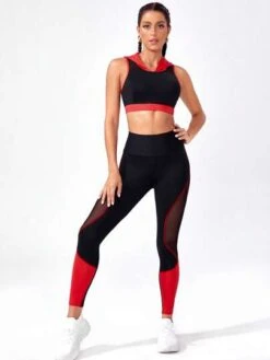Colorblock Contrast Mesh Sports Jacket & Leggings Sports Set