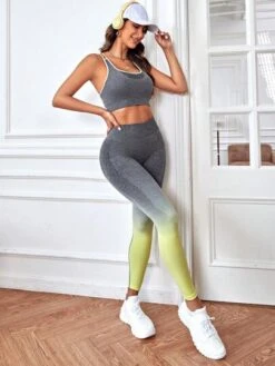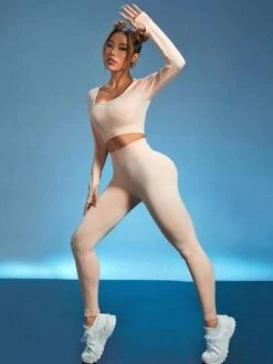 Yoga Basic 2pcs Seamless Mono Yoga Fitness Set Raglan Sleeve Sports Tee & Scrunch Butt Leggings