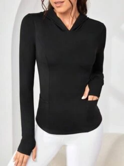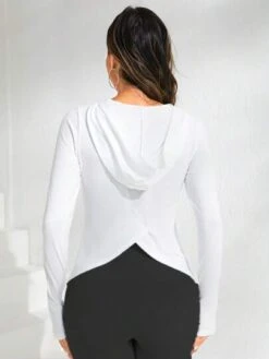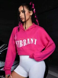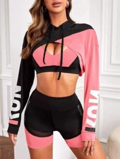 SHEIN Colorblock Letter Graphic Drawstring Hooded Crop Sports Sweatshirt