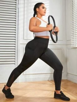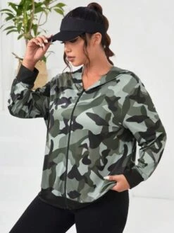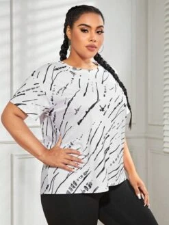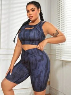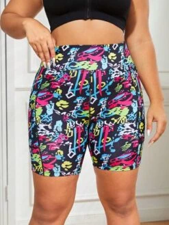 Plus Allover Print Wideband Waist Sports Shorts With Phone Pocket