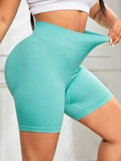 Plus High Stretch Wide Band Waist Sports Shorts With Phone Pocket